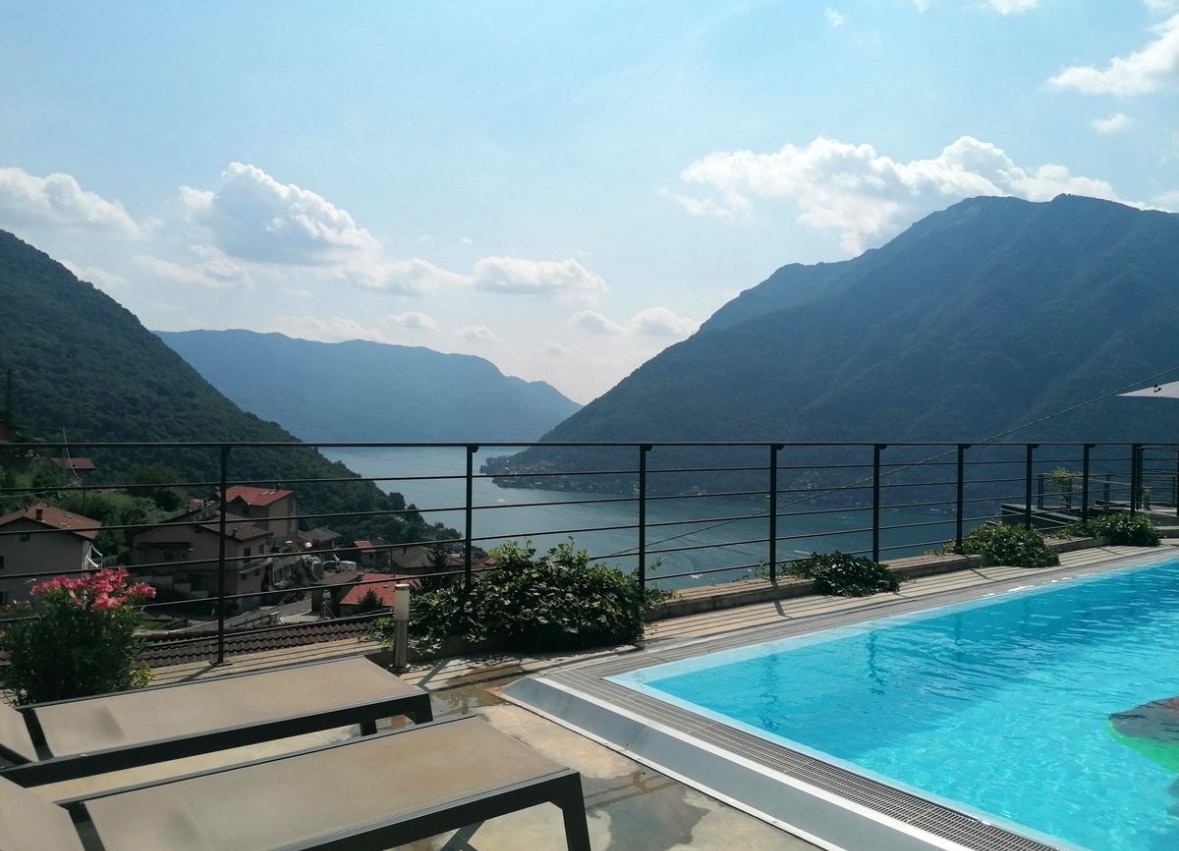 Die Residenz bietet erstklassige Annehmlichkeiten, darunter einen Infinity-Pool und eine Panoramaterrasse mit herrlichem Seeblick. Ein Parkplatz ist ebenfalls vorhanden.