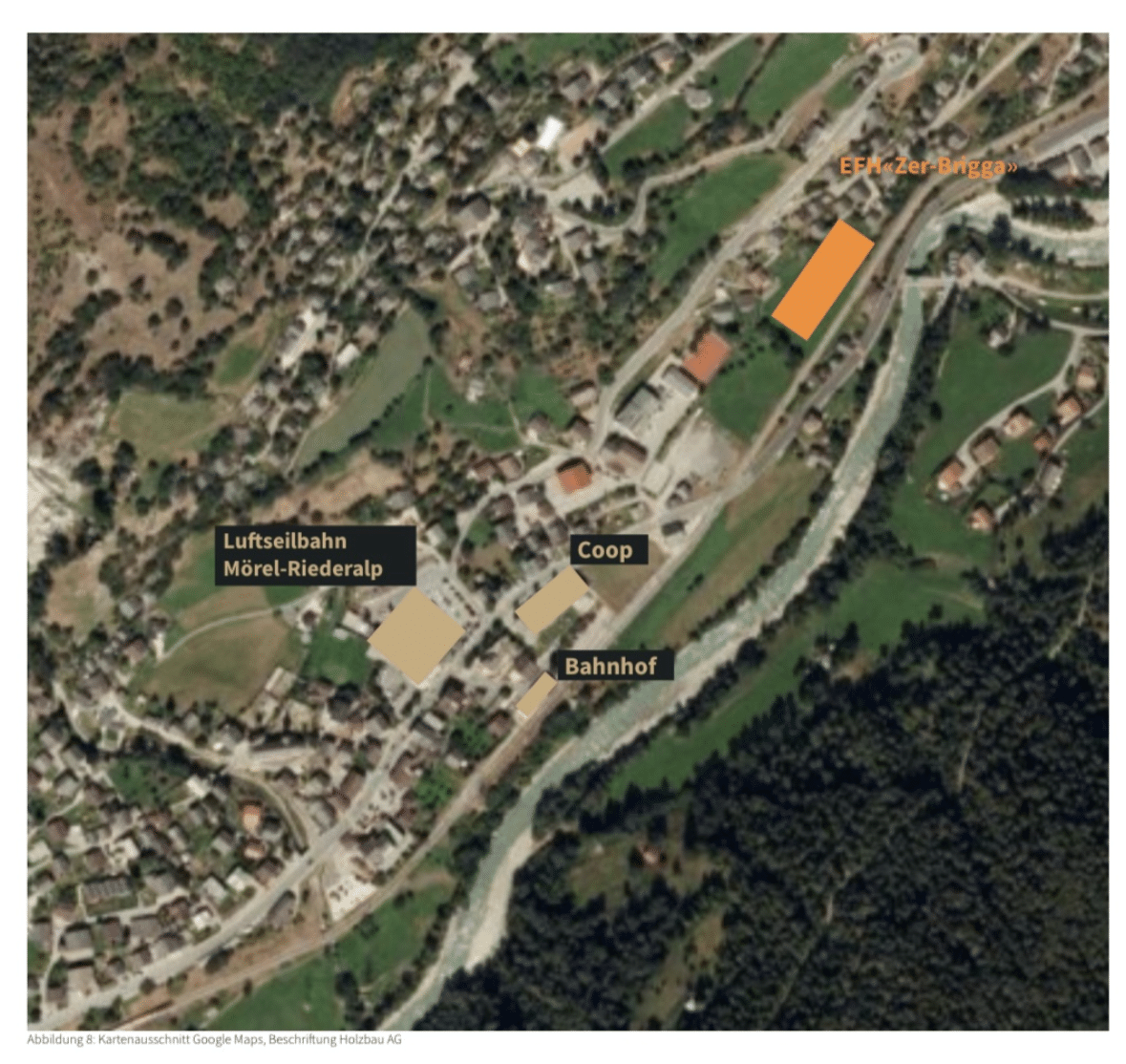 Die neuen Einfamilienhäuser “Zer-Brigga” zeichnen sich durch eine ruhige, aber dennoch optimale Lage im Dorf Mörel aus. Sie sind von allen Seiten gut erreichbar und befinden sich nur 5 Gehminuten vom Coop und dem Bahnhof sowie 5 Gehminuten von der Luftseilbahn Mörel-Riederalp entfernt.
