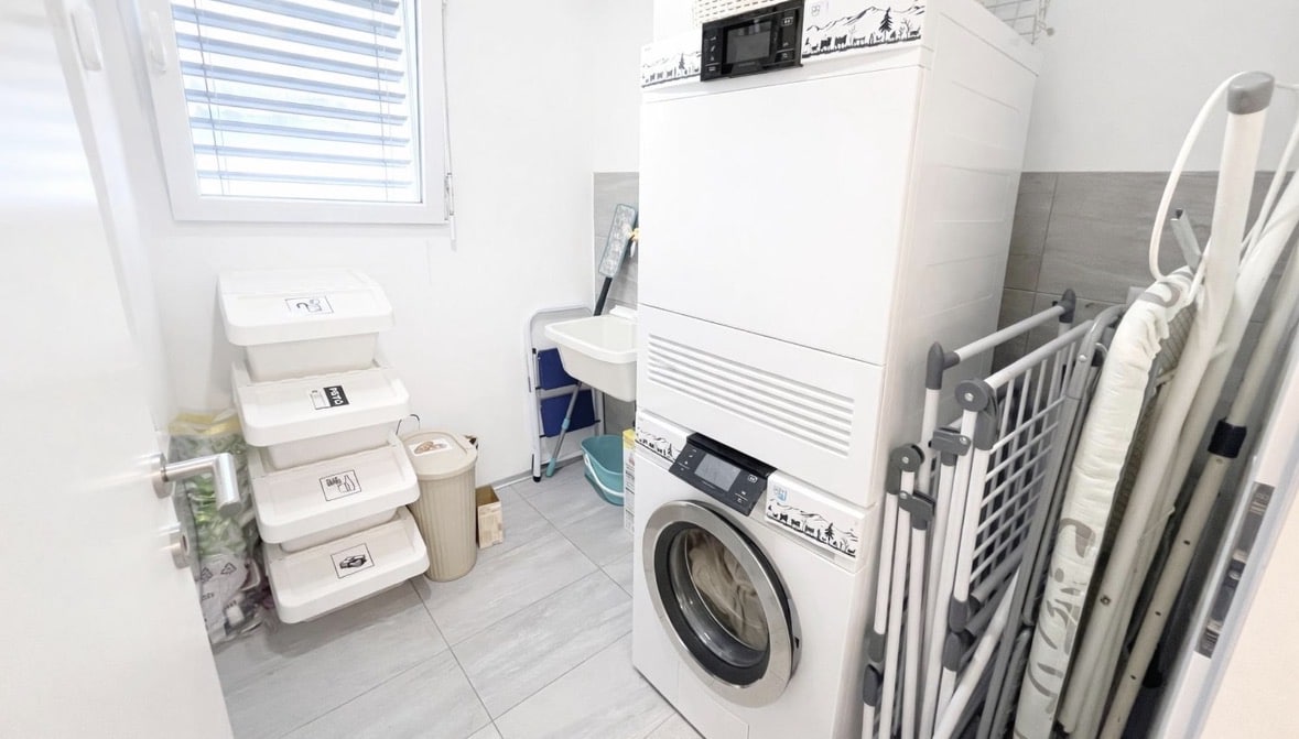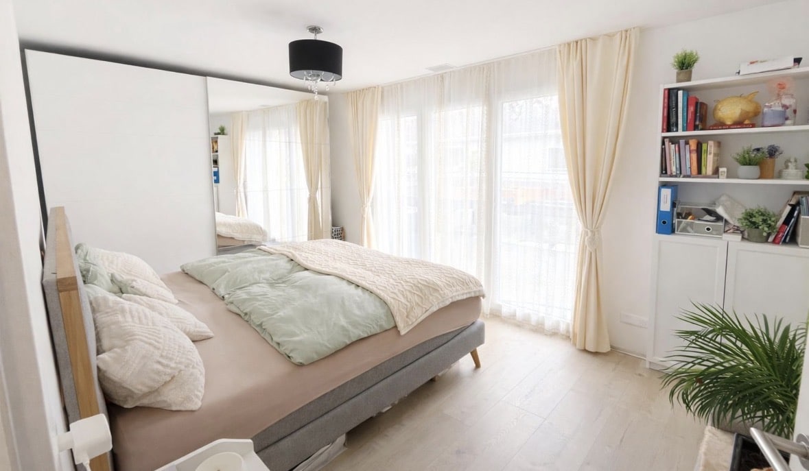 Vier vielseitig nutzbare Schlafzimmer, zwei Badezimmer sowie eine separate Waschküche mit Einbauschränken bieten hohen Wohnkomfort. Die Wohnung ist rollstuhlgängig und dank Lift mit direktem Zugang bequem erreichbar. Garage und Parkplatz sind vorhanden. Die Minergie-Bauweise steht für nachhaltiges und energieeffizientes Wohnen.