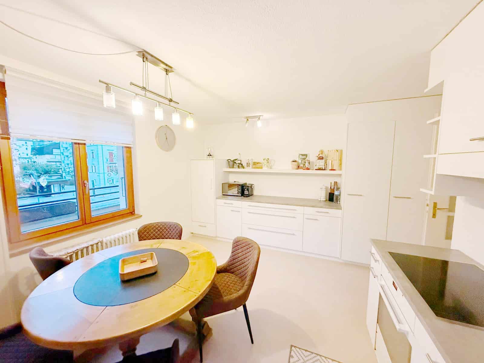 Die Wohnung verfügt über eine moderne, gut ausgestattete Küche mit viel Stauraum und einer gemütlichen Essecke. Insgesamt sind zwei Badezimmer vorhanden – eines mit Badewanne und eines mit Dusche.